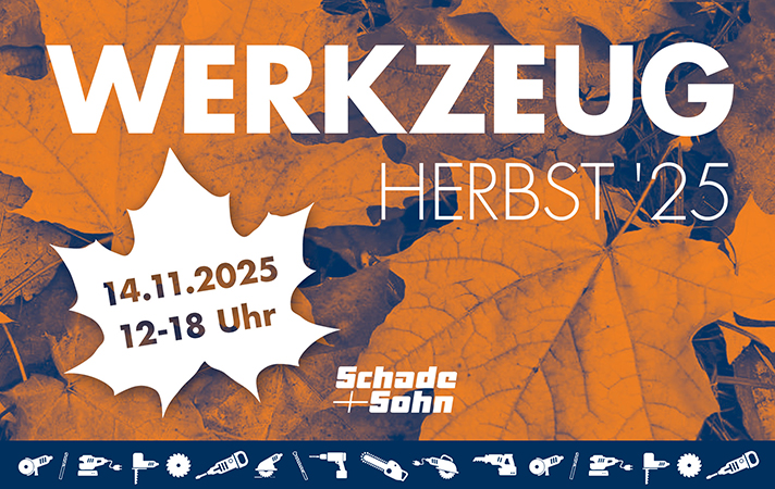 Besuchen Sie uns am Freitag, dem 14. November 2025 (12-18 Uhr) zu unserem exklusiven Herbst-Event im Werkzeug-Shop und profitieren von unschlagbaren Aktionspreisen, interessanten Produktvorführungen und individueller Beratung in gemütlicher Atmosphäre.