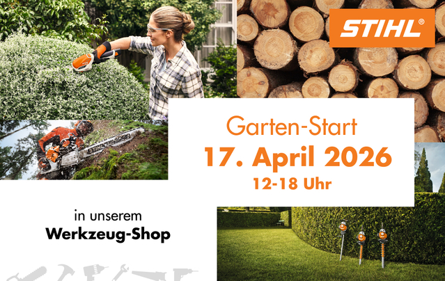 ... bei unserem Frühjahrs-Event im Werkzeug-Shop. Wir eröffnen die Gartensaison mit STIHL und vielen weiteren Top-Marken rund um Haus und Garten – für Profis, Heimwerker und Gartenfreunde. Profitieren Sie von einem breiten Sortiment, attraktiven Angeboten und kompetenter Beratung.
