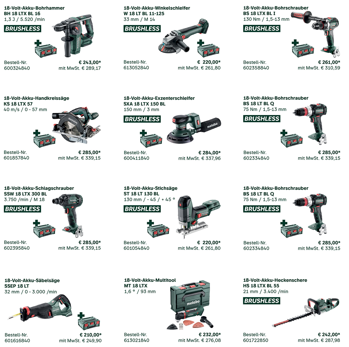 Jetzt bei uns im Werkzeug-Shop – eine tolle Aktion zum Jahresstart: Beim Kauf eines aktionsfähigen Metabo 18 V Akkugeräts erhalten Sie den Akku und das Ladegerät im Set für nur
